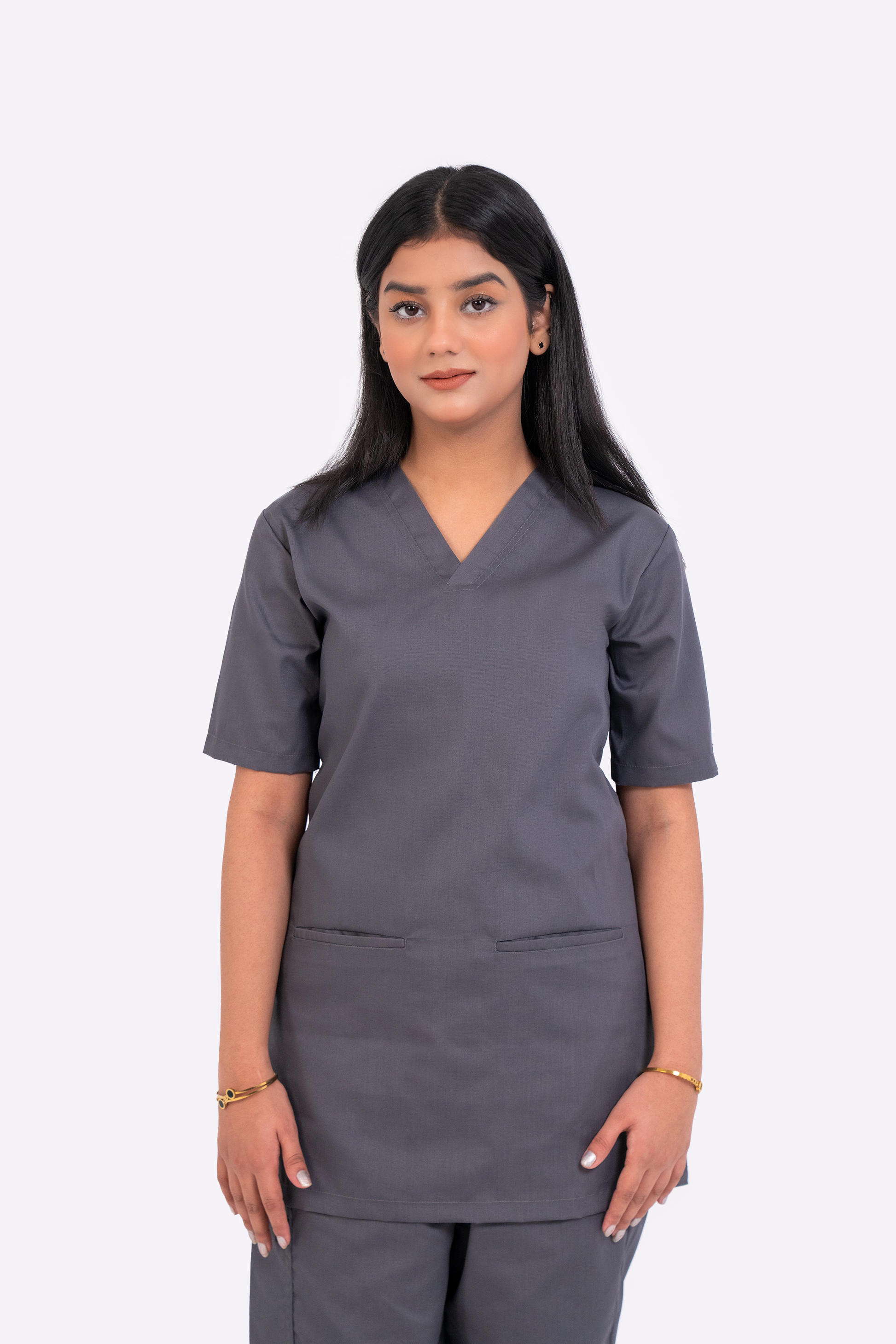 • Clean, modern V‑neckline